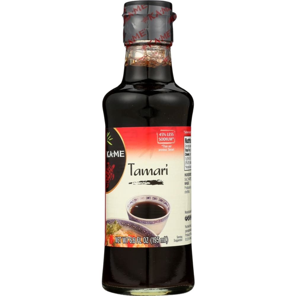 KA–ME Tamari Sauce is a staple in Japanese cuisine. It is thicker, darker and richer than soy sauce. Combined with oil, chopped onion, grated ginger and minced garlic, Tamari can be used to marinade fish or chicken before grilling.