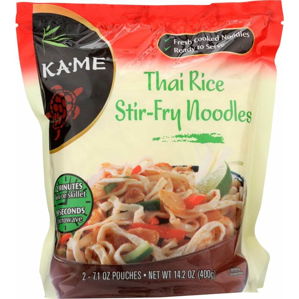 Thai Rice Noodles are common throughout Thailand and Vietnam, and in sections of China. KA•ME Thai Rice Noodles are made from rice flour and rice oil. They are ideal in any stir-fry, salad, soup or in your favorite noodle recipe. They are nutritious, delicious and filling. Enjoy the Thai Rice taste sensation anytime.