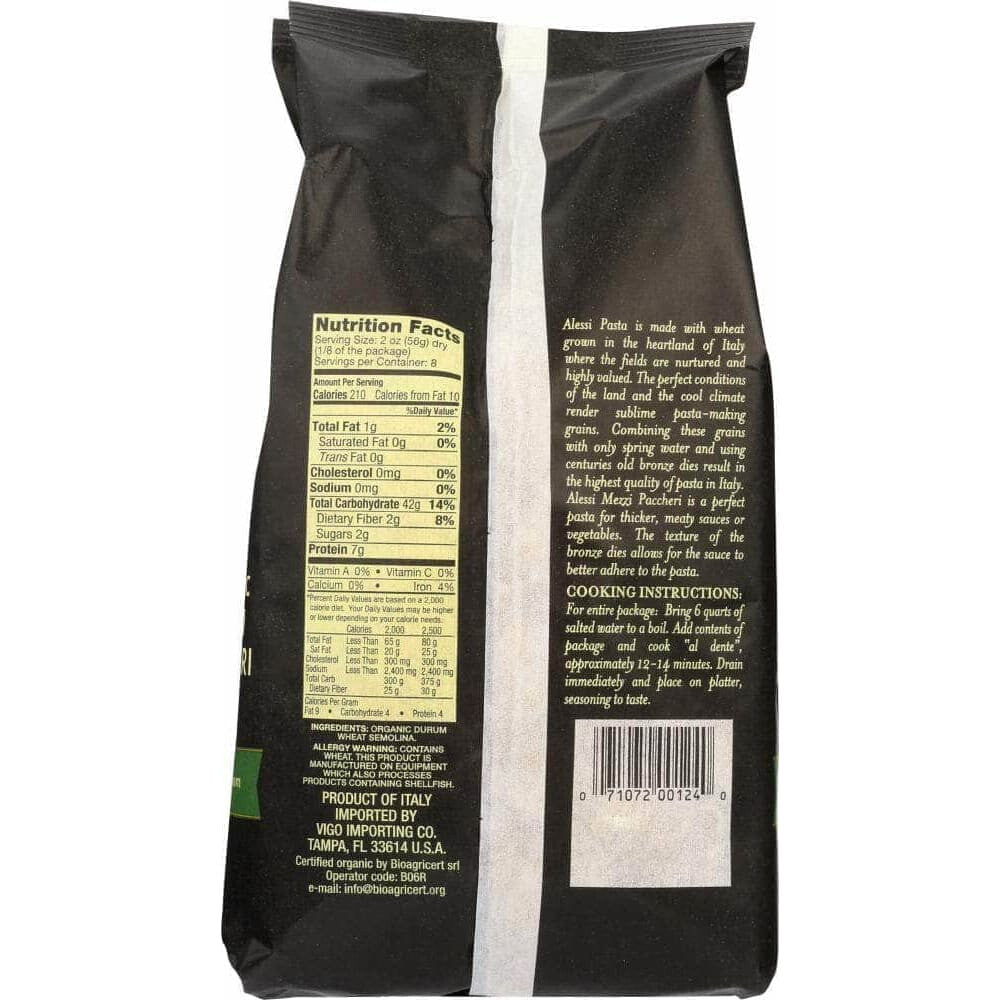 Alessi Organic Mezzi Paccheri Italian Pasta, 16 oz (Case of 4)