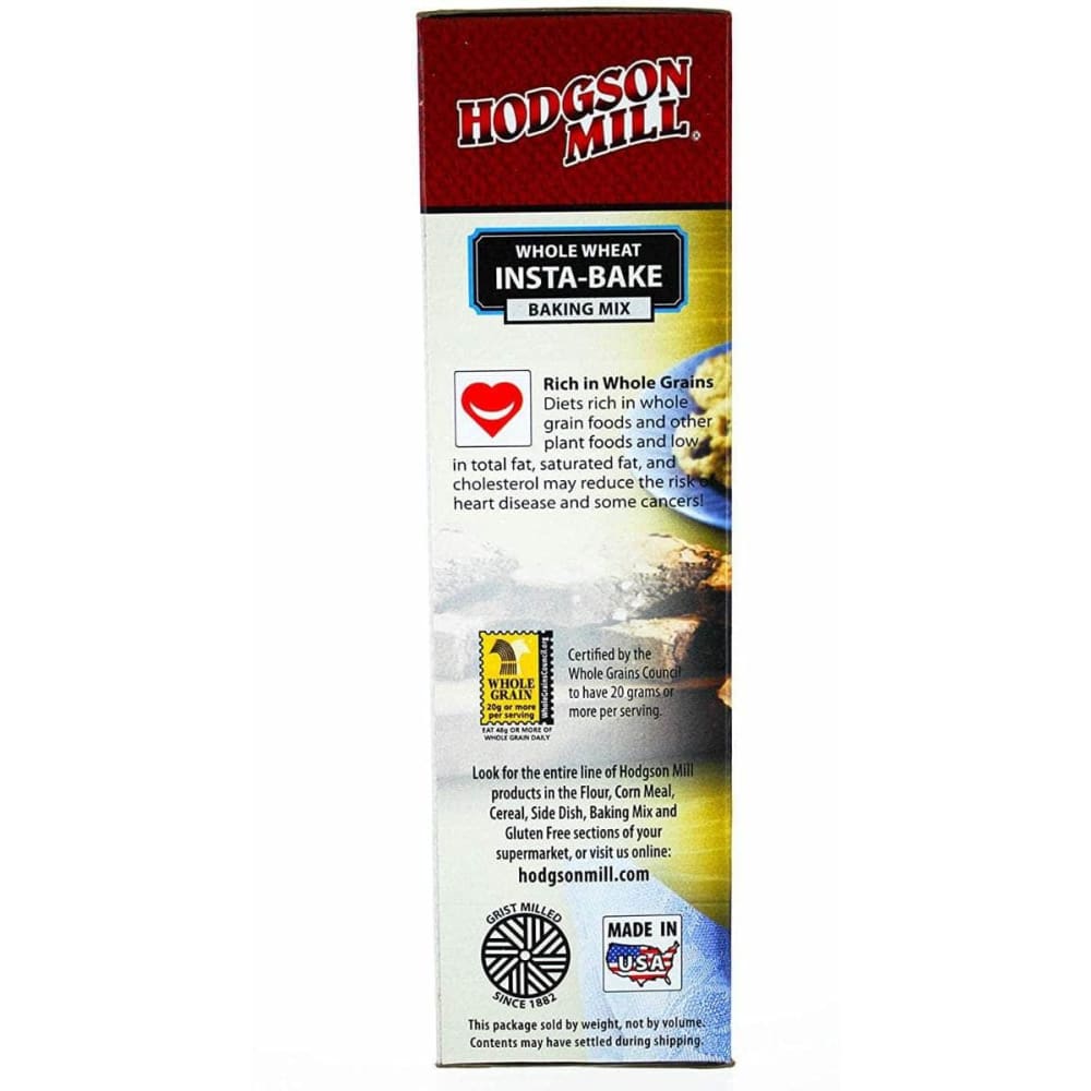 One of our most popular products, Hodgson Mill is proud to offer the finest general purpose, whole wheat baking mix on the market. Made with 100% whole grain, stone-ground flour, it's as healthful as it is convenient. Indulge in homemade biscuits, pancakes, cookies and much more, without sacrificing your health or slaving away for hours - you'll find great Insta-Bake recipes on the box, plus an offer for "Our Favorite Recipes Using Insta-Bake" recipe booklet.