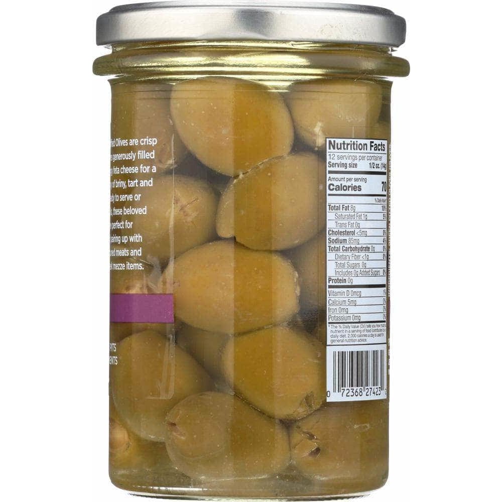 Green Greek Halkidiki Olives stuffed with creamy, tangy feta cheese.