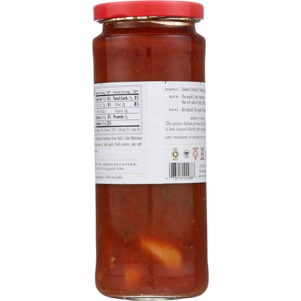 The secret to Mezzetta’s rustic marinara lies in its very few, very fresh ingredients. Crafted with the Italian plum tomatoes imported from San Marzano, whole cloves of mellow garlic, sweet Genovese basil leaves, and the finest extra virgin olive oil.