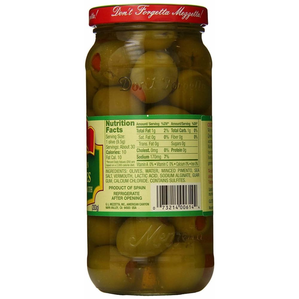 Mezzetta Martini Olives are imported from ancient Mediterranean olive groves. Green in color and pleasantly tart in flavor we've taken the extra step of marinating them in dry vermouth. Simply add them to Gin or Vodka for the perfect martini. No vermouth needed!