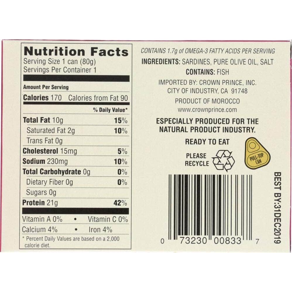 Crown Prince Skinless & Boneless Sardines in Olive Oil, 3.75 oz (Case of 4)