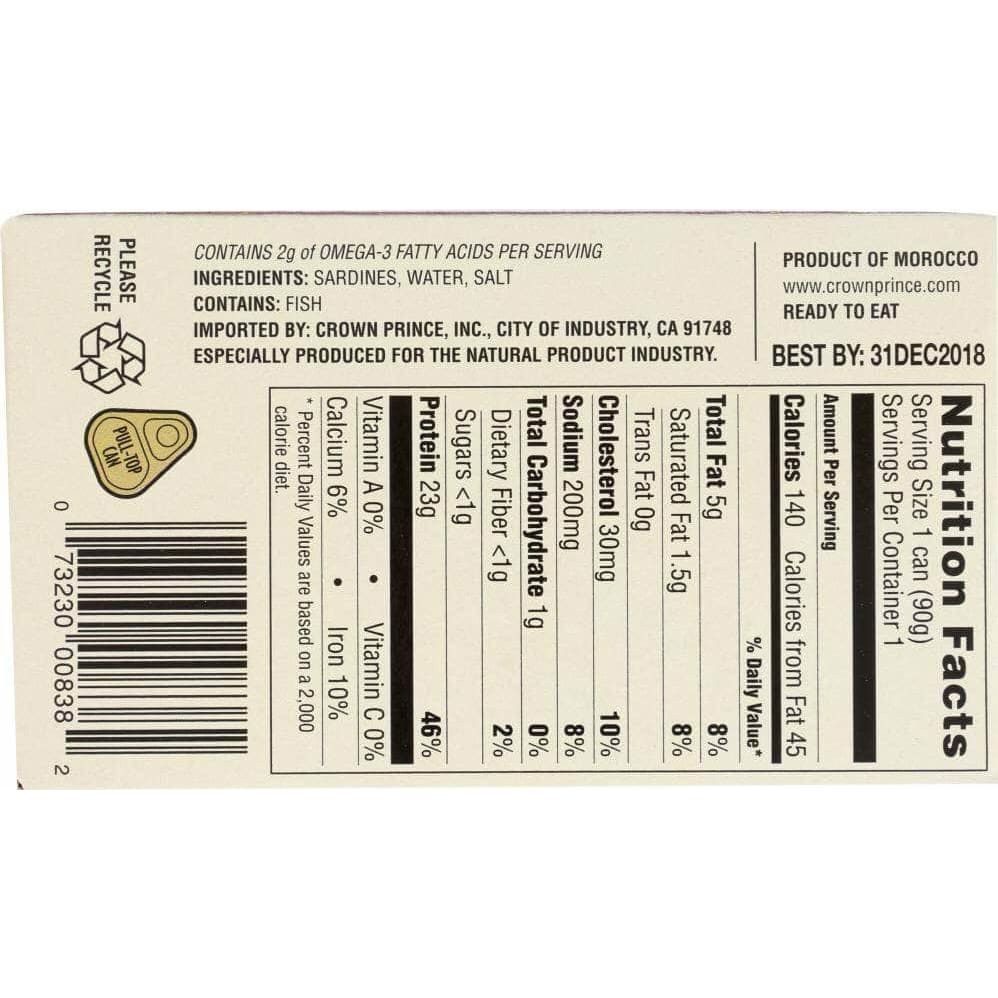 Crown Prince Skinless & Boneless Sardines In Water, 4.37 oz (Case of 4)