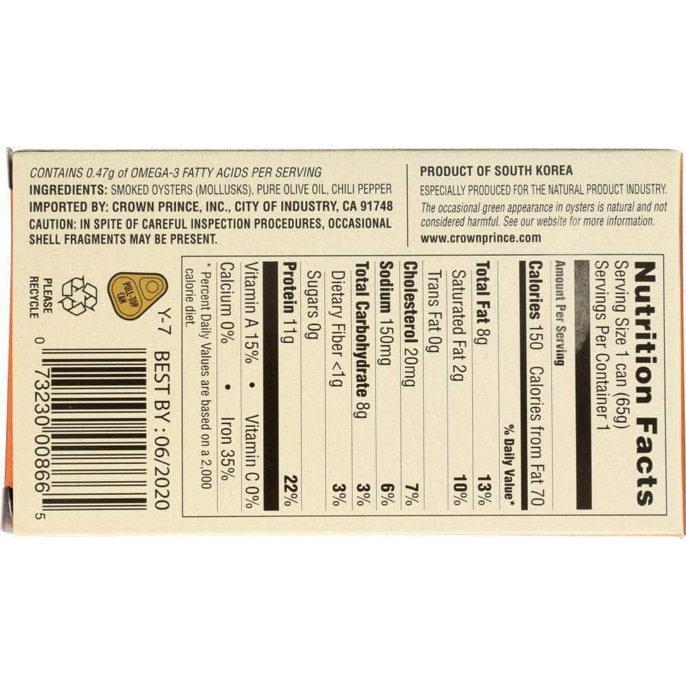 Crown Prince Smoked Oysters with Red Chili Pepper, 3 oz (Case of 4)