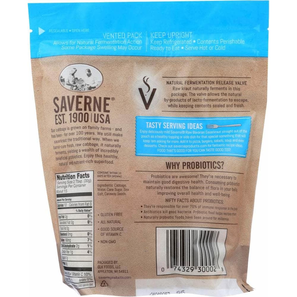 Saverne Kraut Raw Natural Bavarian, 16 oz (Case of 4)