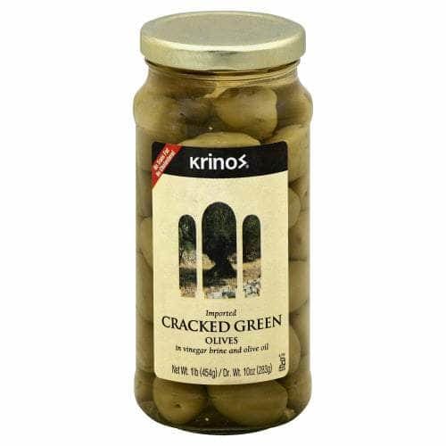 Krinos Green Cracked Olives, 16 oz (Case of 3)