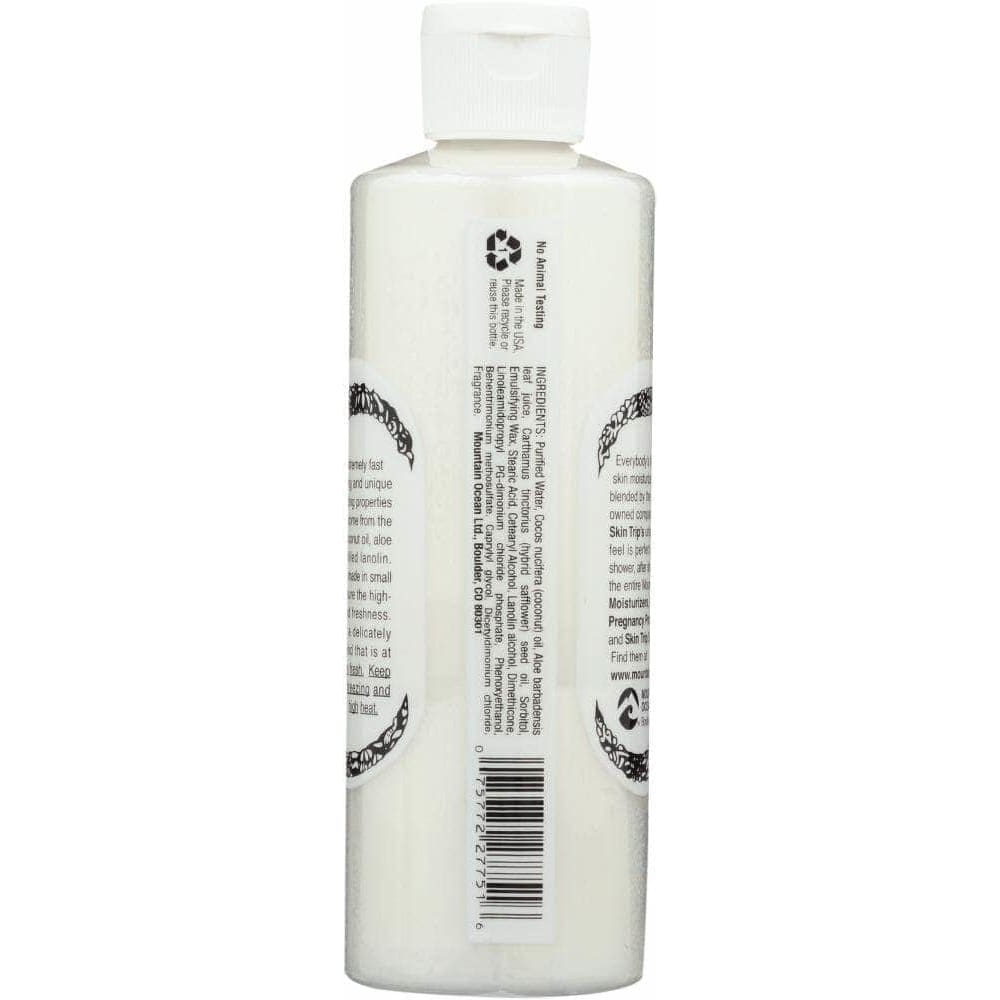 Skin Trip Lotion is Mountain Ocean’s original coconut moisturizer. The extremely fast absorbing and unique moisturizing properties of Skin Trip come from active ingredients, coconut oil, aloe vera and distilled lanolin. It’s light and smooth feel is unique among skin moisturizers. Skin Trip’s non-greasy and fast-absorbing formula soothes, protects and quickly replenishes much needed moisture to dry skin. It provides the nutrients that your skin needs and helps reduce the natural evaporation of moisture from the skin. Skin Trip is perfect after the sun, after the shower, after a shave—anytime, anywhere.