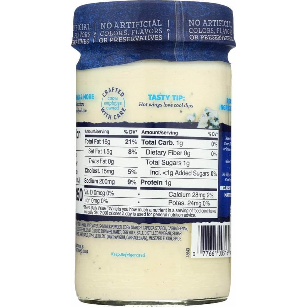 Made with artisan blue cheese, fresh buttermilk, homemade mayonnaise and the perfect blend of spices, our Chunky Blue Cheese is the perfect addition to try on hamburgers, sandwiches, and wraps - even potato salad! Great taste with no artificial colors, flavors, or preservatives. Tasty Tip: Hot wings love cool dips!