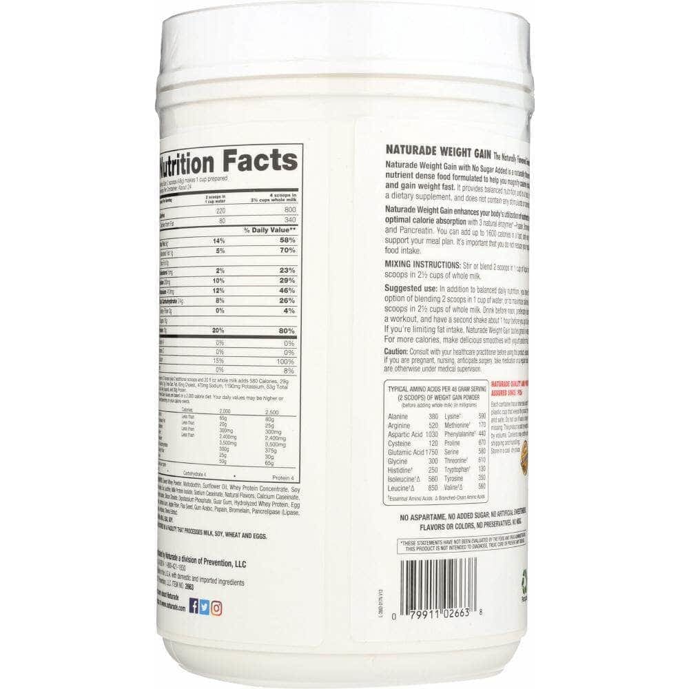 Naturade Weight Gain with No Sugar Added is a naturally flavored, nutrient dense food formulated to help you magnify calorie intake and gain weight fast. It provides balanced nutrition and is a food, not a dietary supplement, and does not contain any stimulants or steroids.