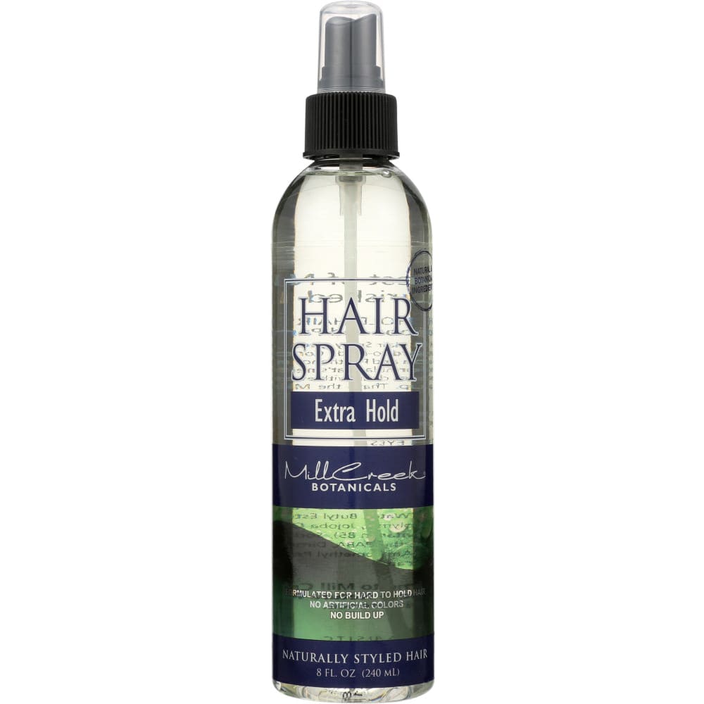 The Best of Nature for Nourished Beauty. Since 1975, Mill Creek Botanicals has been crafting hair care products such as this original formula. Extra Hold Hair Spray draws its results from keratin, jojoba, and panthenol. Mill Creekโs Extra Hold Hair Spray gives your hair a special soft hold with control confidence. Keratin, jojoba, and panthenol make the difference for superior performance from this non-drying formula thatโs neither stiff nor sticky. Our exclusive blend rinses clean with every shampoo, leaving no hair-dulling or build-up.