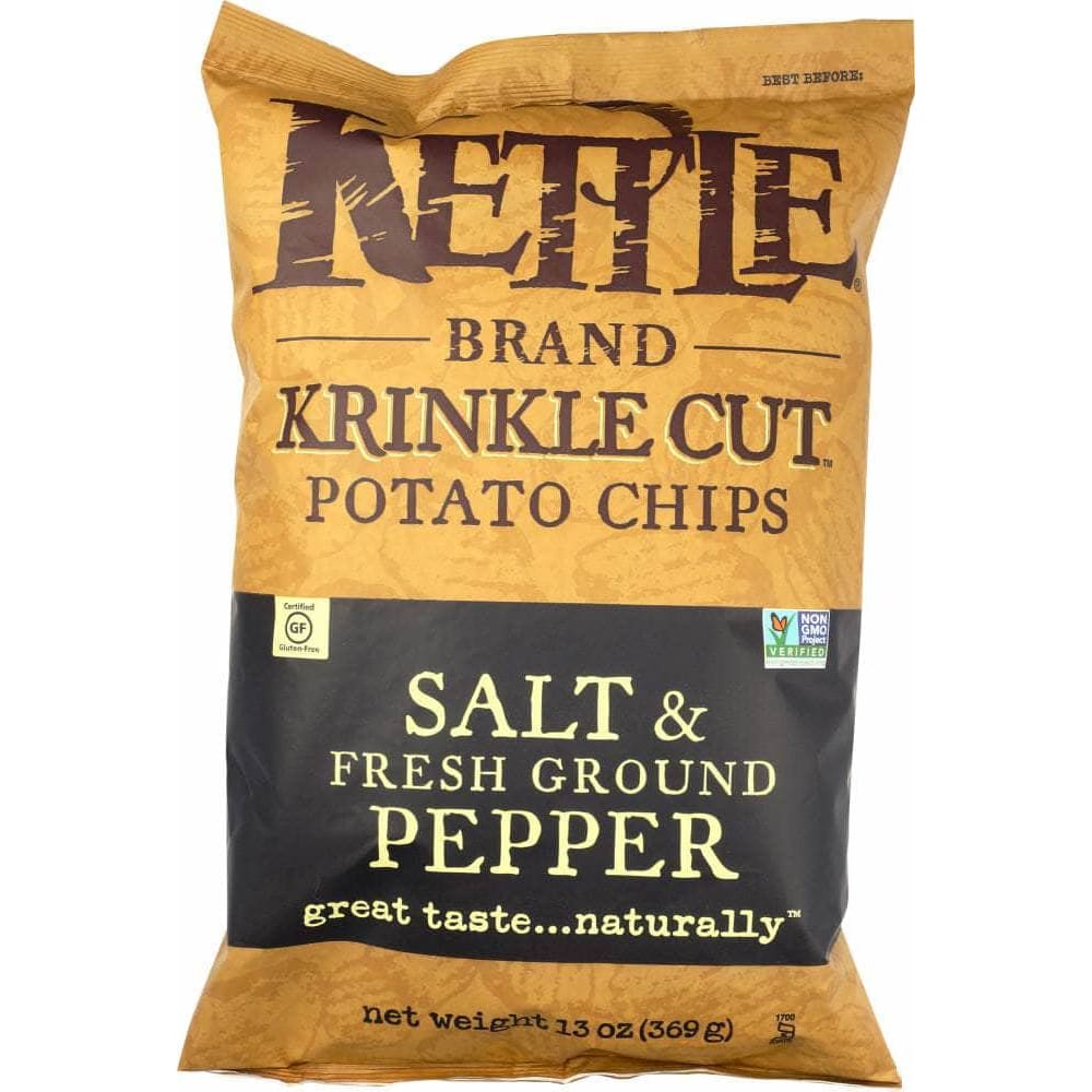 Kettle Brand Krinkle Cut Potato Chips Salt & Fresh Ground Pepper, 13 oz (Case of 3)