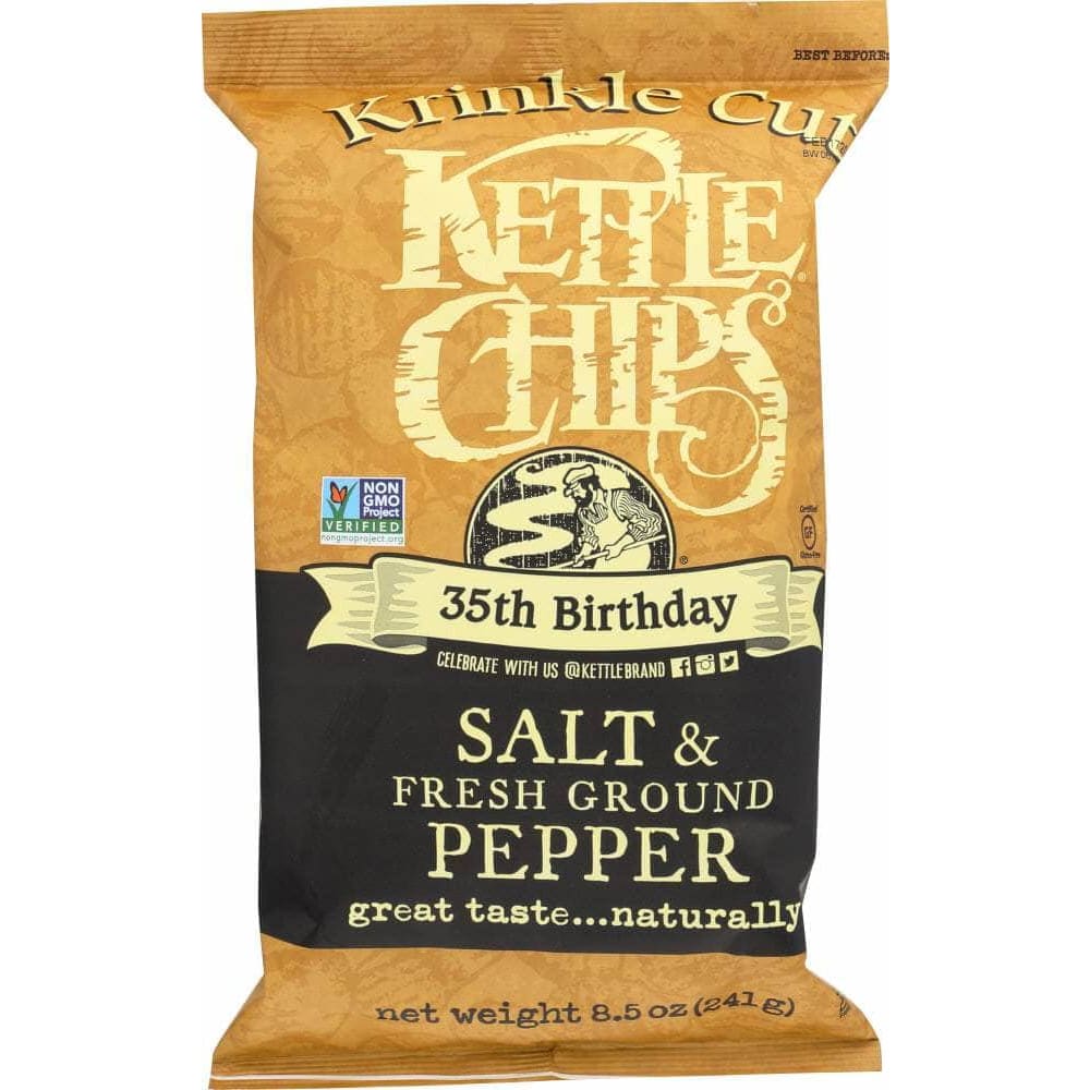 Kettle Brand Krinkle Cut Potato Chips Salt & Fresh Ground Pepper, 8.5 oz (Case of 4)