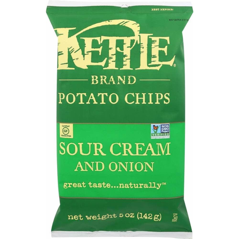 Kettle Brand Potato Chips Sour Cream and Onion, 5 oz (Case of 4)