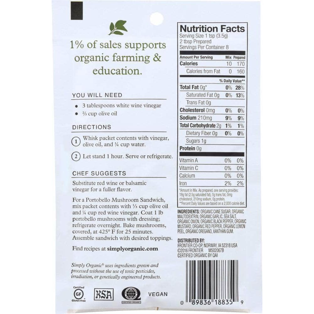 Simply Organic Garlic Vinaigrette Dressing Mix, 1 Oz (Case of 5)