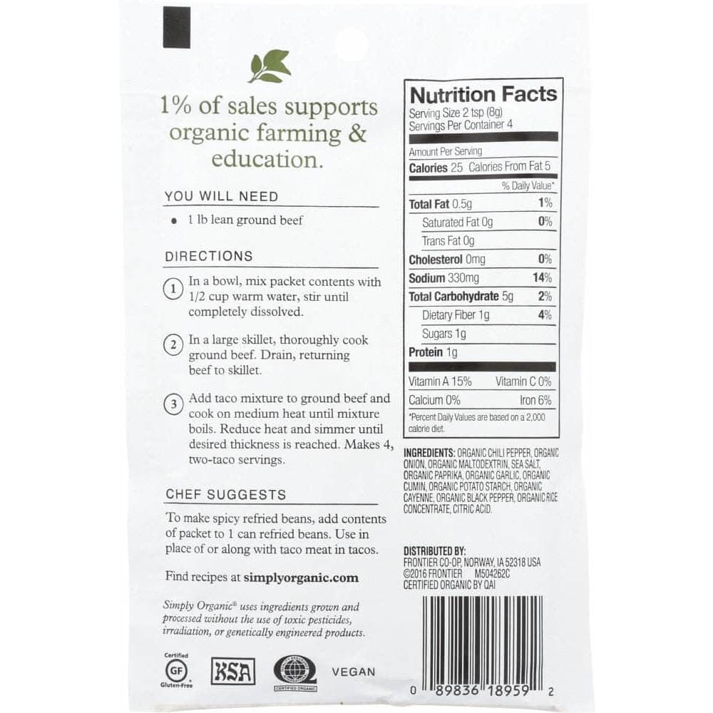 Simply Organic Seasoning Mix Spicy Taco, 1.13 Oz (Case of 5)