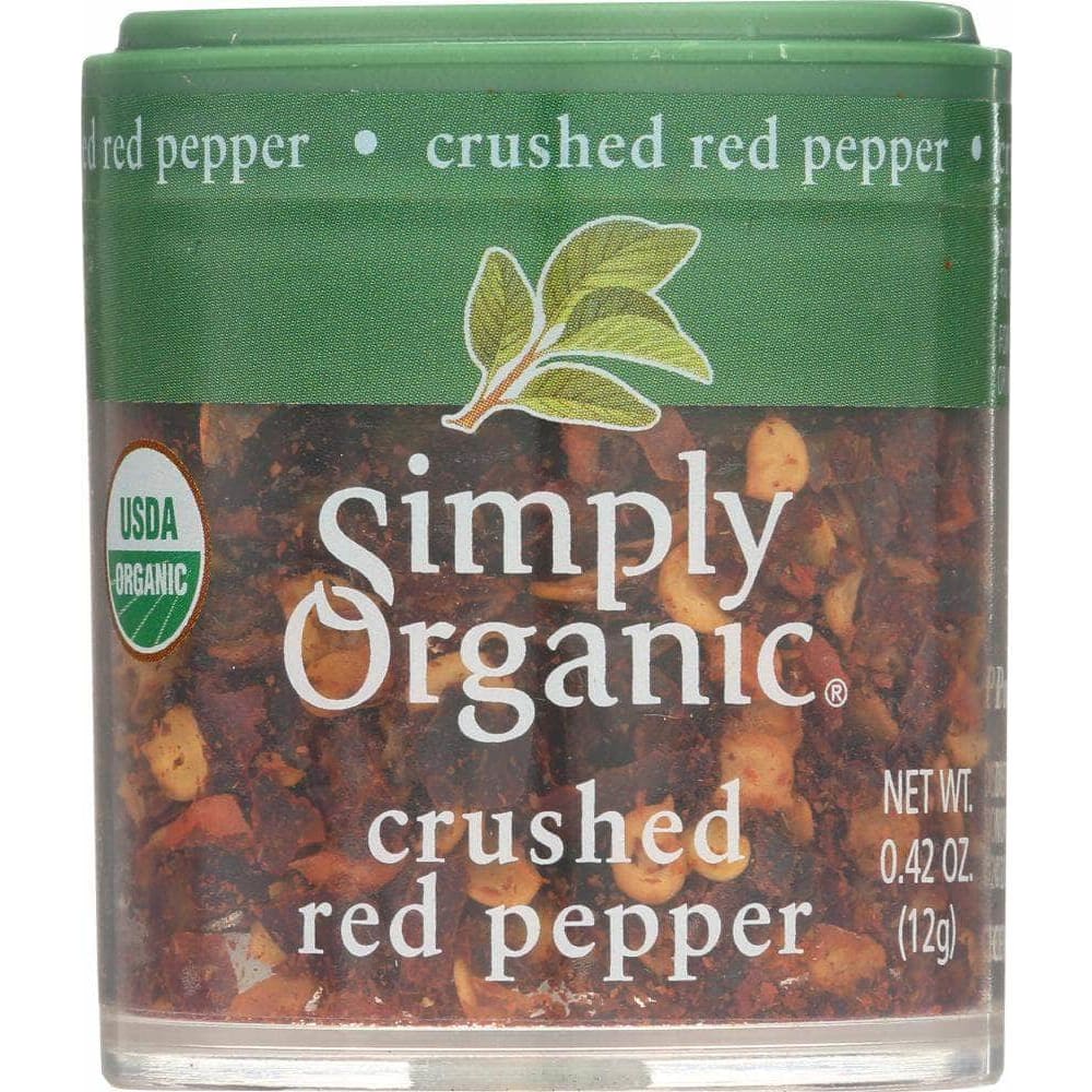 Simply Organic® Crushed Chili Peppers add lively heat to sauces, pizzas and grilled foods. The heat also pairs well with the creamy textures of cheese sauce or creamed soups. Remember, a little pinch of crushed red peppers goes a long way. - 0.42 oz.