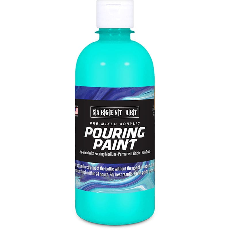 Sargent Art Pouring Paints are pre-mixed with pouring medium and are ready to use right out of the bottle! No need to add pouring medium, these paints can be poured on canvas or any surface to give a fun colorful look. Shake well before use. Flip top cap. Each bottle includes 16 oz.