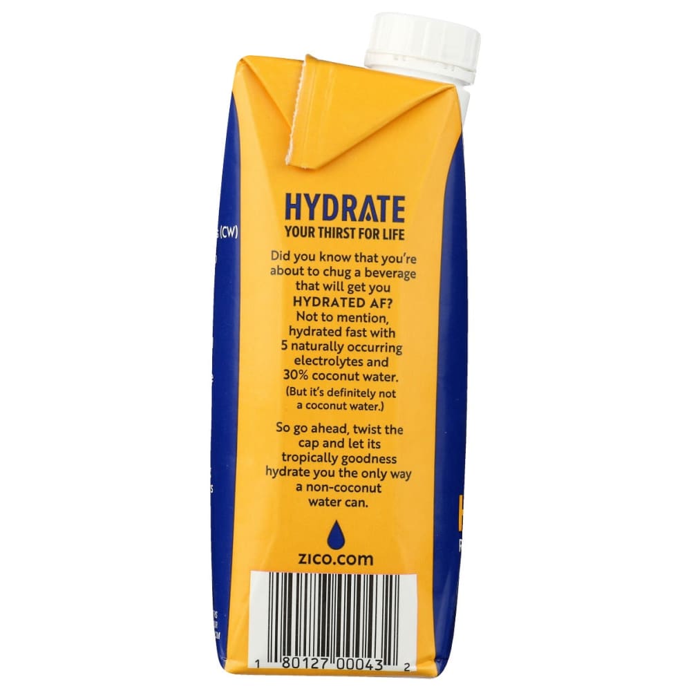 Want to get hydrated AF? And fast? With 30% coconut water, added electrolytes and added sugar, ZICO HYDRATE was made for rapid hydration. It's not a coconut water with a hint of fruit flavor. No, it's a deliciously punch-you-in-the-tastebuds hydrating beverage that just happens to have coconut water in it.