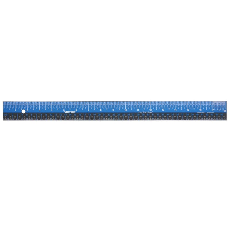 The Easy Read™ Rulers are designed to eliminate the confusion and strain of reading your typical ruler. On the English side, each line is marked, so there is no guessing or counting lines! On the metric side, the millimeter hash marks rise and fall making it easy to identify the measurements. This Easy Read™ Ruler is made of durable stainless steel, and measures 18".