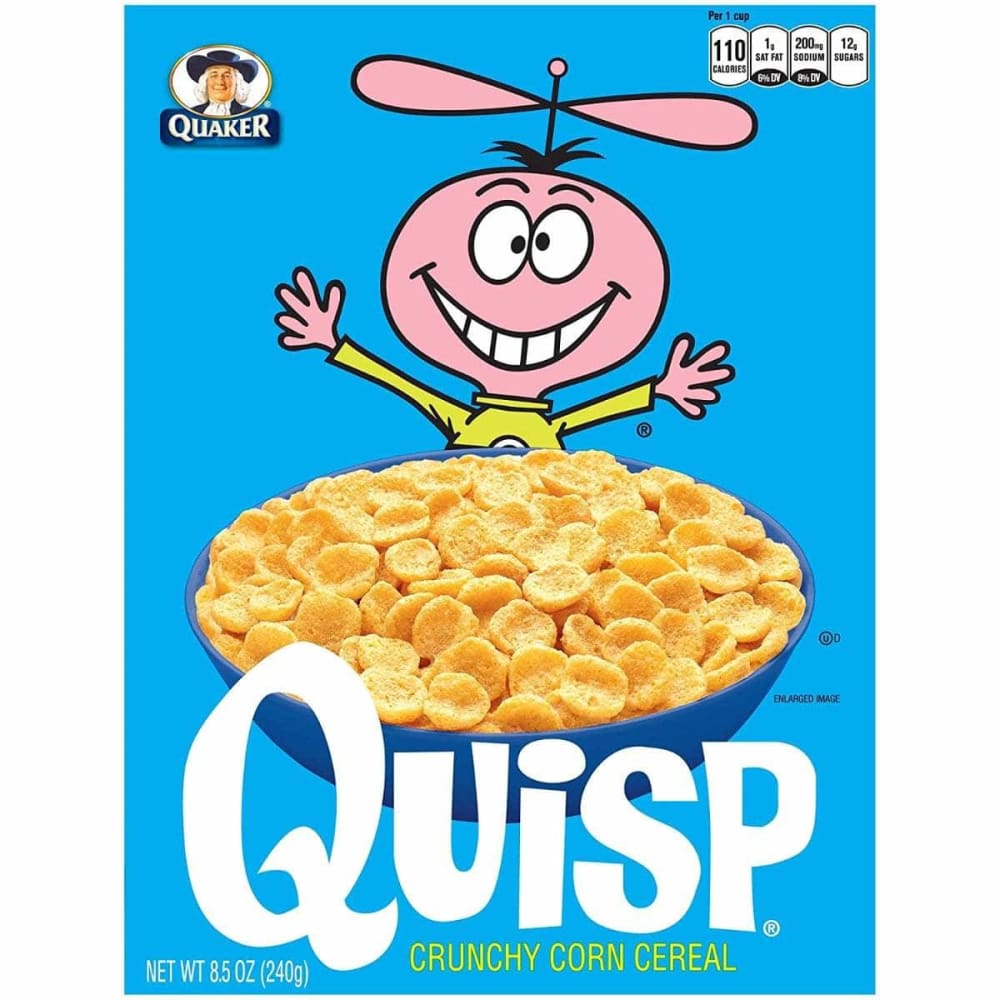 In 1965, Quisp landed on Earth with his Quazy Energy Cereal – and the world's been a better place ever since, especially during breakfast. The saucer-shaped, crunchy corn cereal has delighted kids and adults everywhere. Bring Quisp to your house and the home planet today. The crispy flavor is out of this world.
