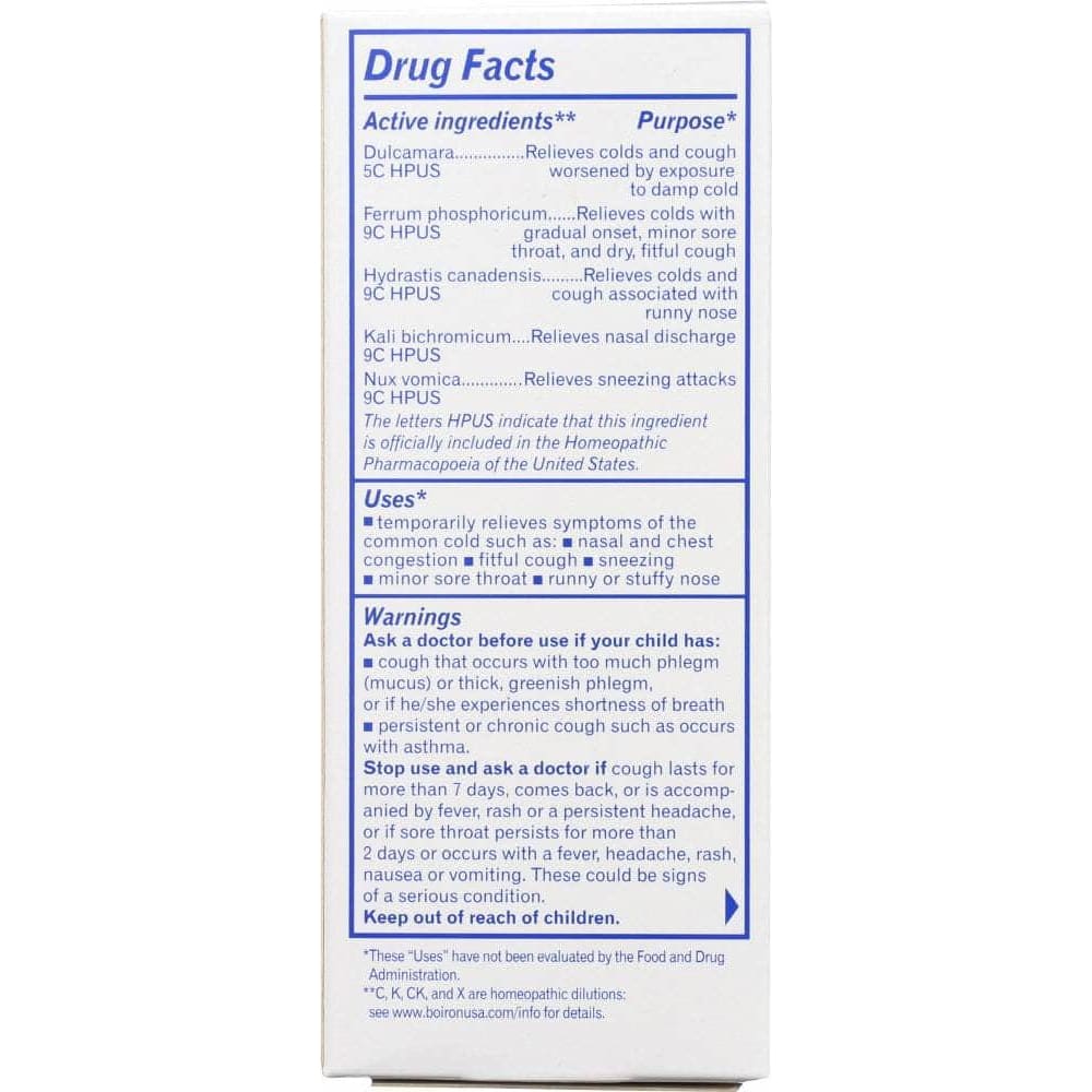 Boiron Chestal Cold & Cough conveniently targets both common cough and cold symptoms. The multi-symptom homeopathic medicine relieves nasal and chest congestion, dry fitful cough, sneezing, minor sore throat, and runny or stuffy nose.* The sweet-tasting syrup won't interact with other medications and is recommended for children ages 3 and up. It does not contain any of the ingredients questioned by FDA for use in young children. Children's Chestal Cold & Cough is dye-free and 99.9 percent alcohol-free. It is non-habit forming, and won't mask symptoms of a more serious condition.