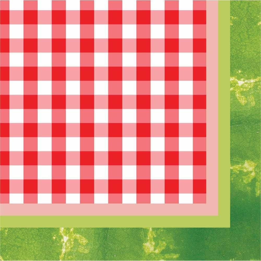 The juicy watermelon themed collection from Creative Converting mixes a classic red and white gingham plaid print on the napkins with plates that look like a giant slice of sun-ripened watermelon. Nothing says summer like ripened fruit bursting with flavor!
