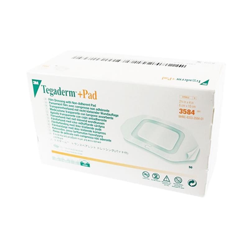 3M™ Tegaderm™ +Pad Film Dressing with Non-Adherent Pad is an all-in-one dressing that provides a sterile, waterproof, viral and bacterial barrier. These dressings consist of a non-adherent absorbent pad bonded to a thin film transparent dressing. Helping to support healing, the breathable film allows the skin to function normally with good exchange of moisture vapor and oxygen. Overall Size: 2-3/8" x 4", Pad Size: 1" x 2-3/8". 50/box.
