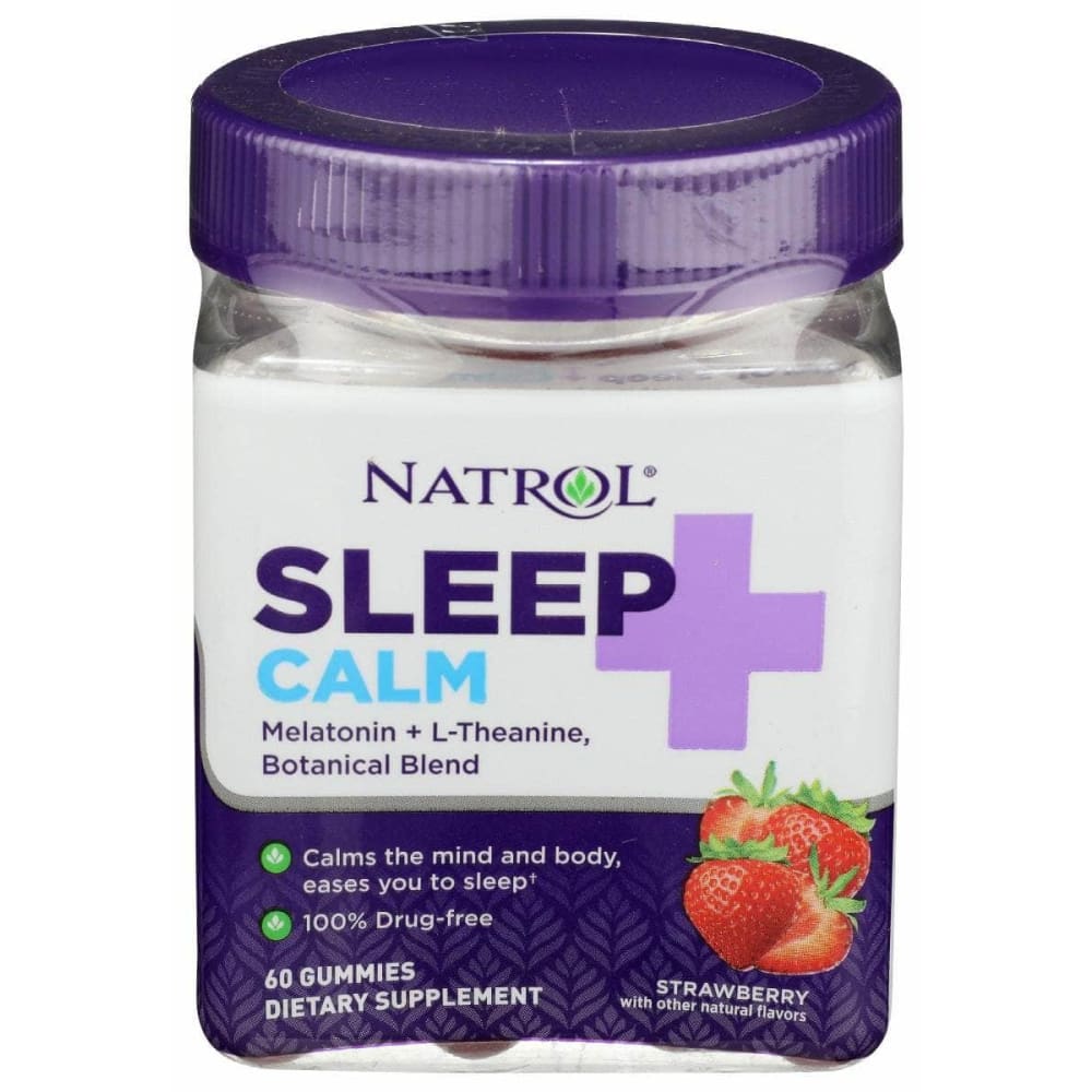 Natrol Sleep+ Calm Gummies offer a powerful blend of Melatonin, L-Theanine, Chamomile, Lavender, and Lemon Balm to help calm the mind and body, and ease you to sleep.†