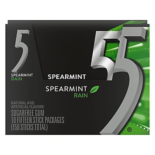 5 Gum Spearmint Rain Sugar-Free Chewing Gum, 10 pk./15 ct.