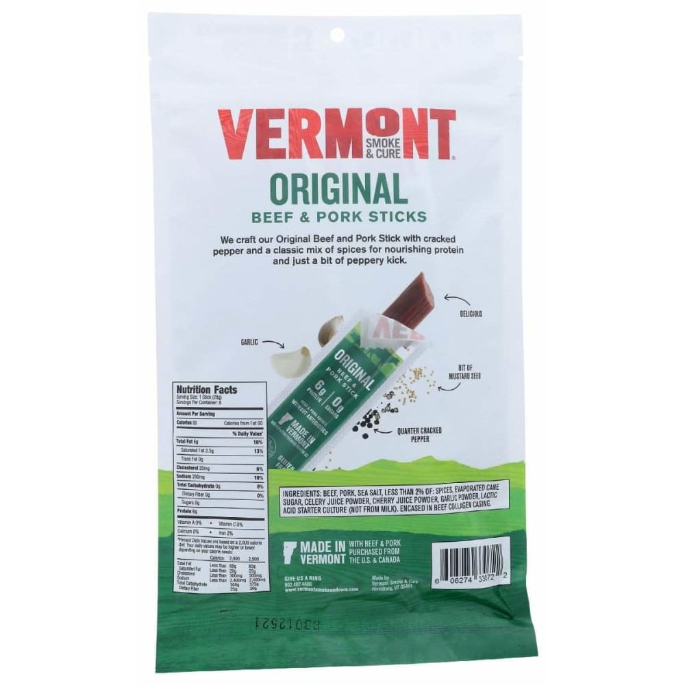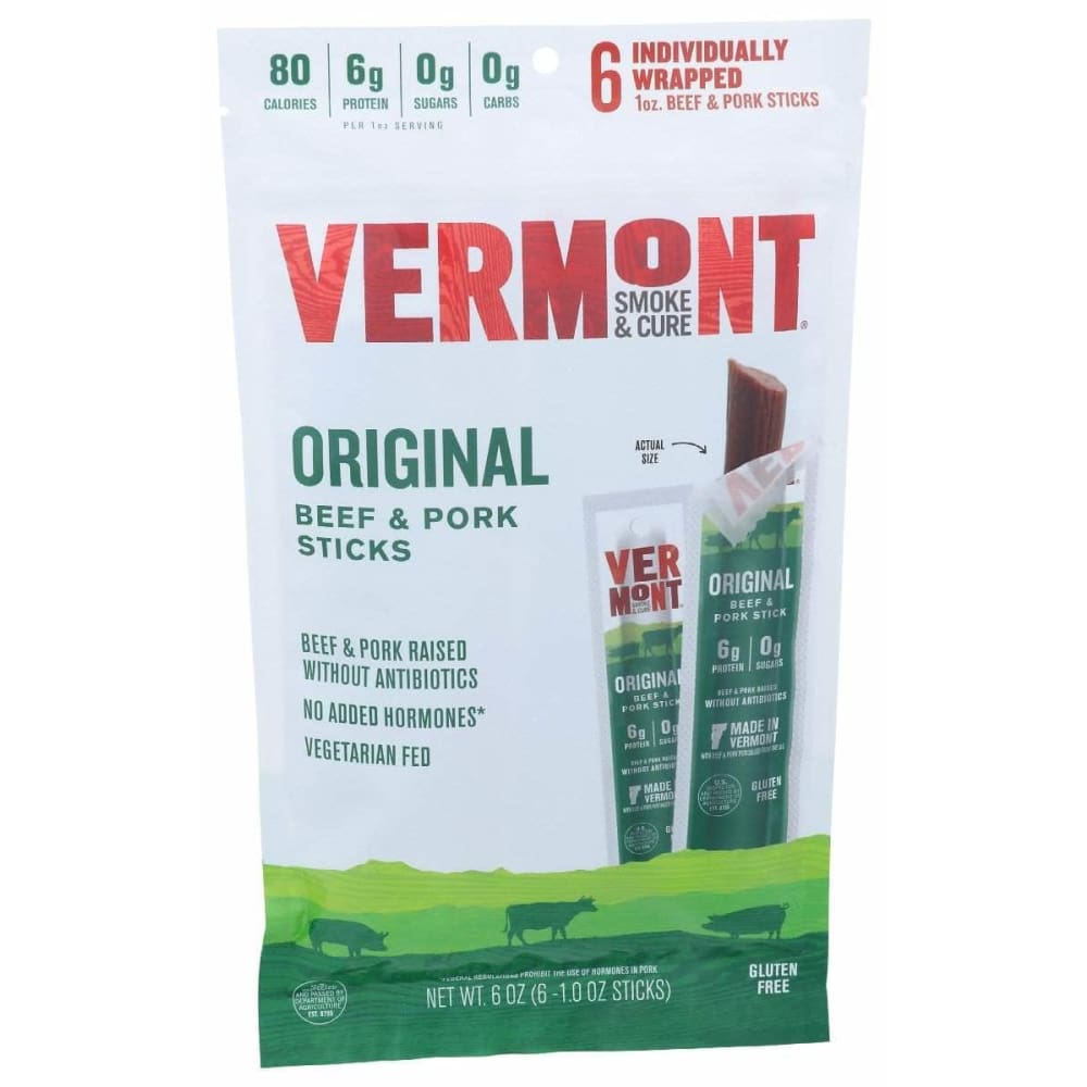 Vermont Smoke Original Sticks Beef Pork 6Ct, 6 Oz (Case of 2)