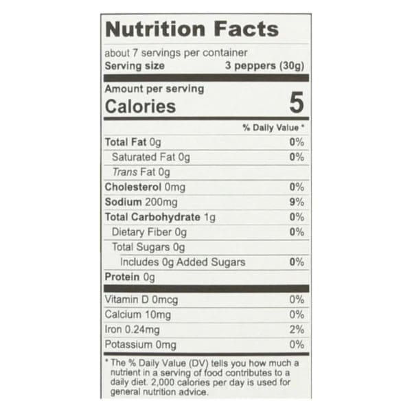 Features: Ingredients: GREEK PEPPERONCINI;WATER;SEA SALT;DISTILLED VINEGAR;CITRIC ACID;ACIDITY REGULATOR;TURMERIC