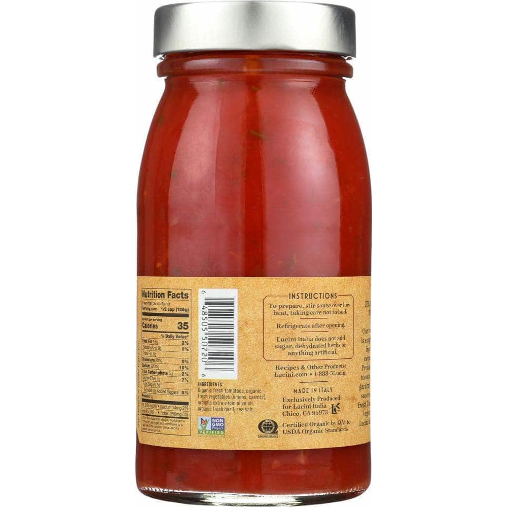 Our recipe for good food is simple use only a few fresh ingredients of extraordinary quality. Produced only during the tomato harvest to capture gardenfresh flavor Lucini® sauces are simply organic fresh Tuscan tomatoes fresh vegetables & herbs and organic Lucini® extra virgin olive oil.