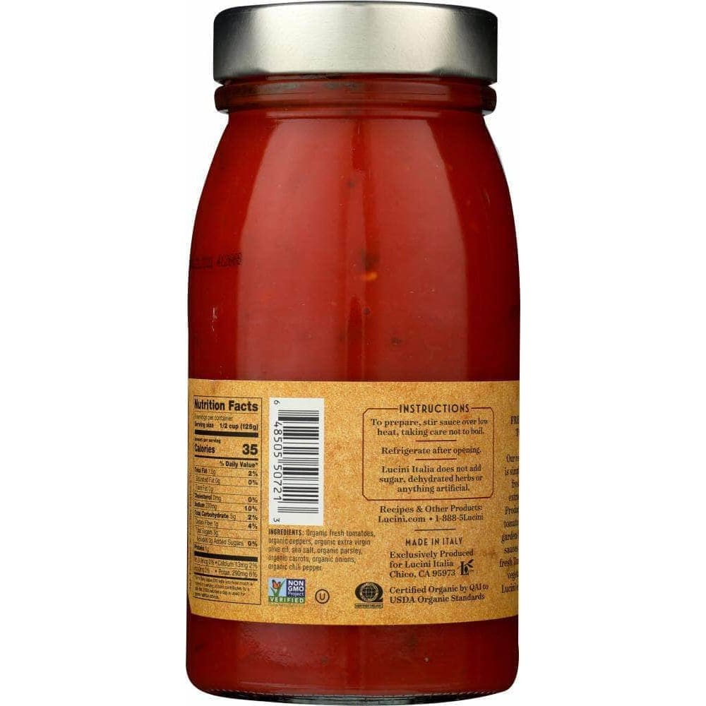 Our recipe for good food is simple use only a few fresh ingredients of extraordinary quality. Produced only during the tomato harvest to capture gardenfresh flavor Lucini® sauces are simply organic fresh Tuscan tomatoes fresh vegetables & herbs and organic Lucini® extra virgin olive oil.