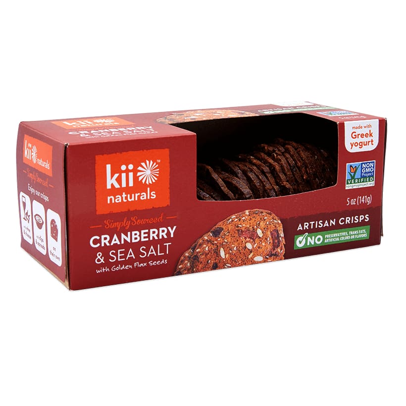 Kii Naturals Cranberry & Sea Salt with Golden Flax Seeds Crisps, 5 oz (Case of 4)