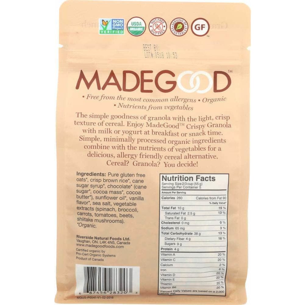 Madegood Crispy Light Granola Cocoa Crunch, 10 oz (Case of 3)