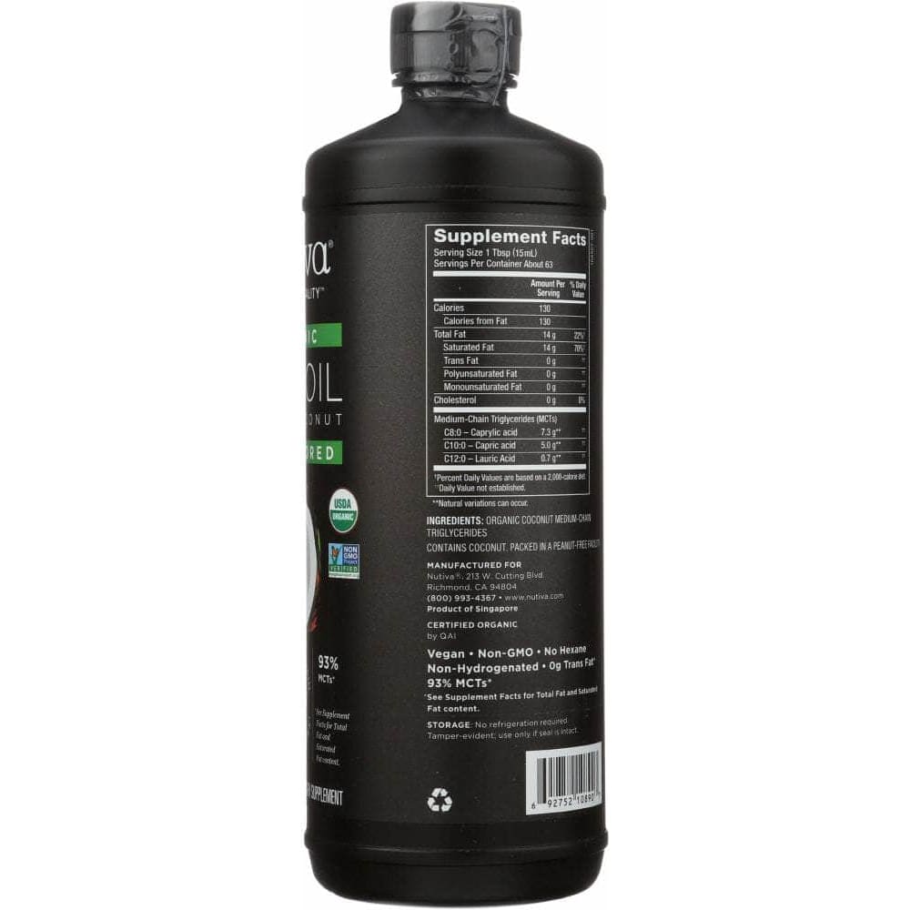 Nutiva Organic MCT Oil is an oil concentrated with the Medium-chain triglyerides, capric acid and caprylic acid. Medium-chain triglycerides, or MCTs, are the types of saturated fatty acids typically found in coconuts. Using a USDA certified organic process, we gently remove the fats from virgin coconut oil that remain solid at room temperature, leaving high levels of capric and caprylic acids. Unlike non-organic MCT Oil brands, there are no chemicals or filler oils used during this process, resulting in a clean, light coconut-flavored MCT Oil with no harsh aftertaste.