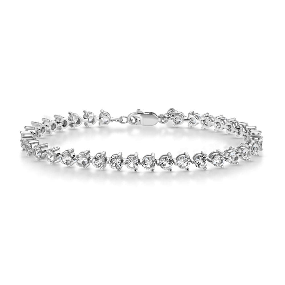 Introducing the ultimate statement piece for any jewelry collection, the 925 lab created white sapphire tennis bracelet. Crafted with expert precision, this stunning piece features 34 round cut lab created white sapphires that have been faceted to to perfection to maximize their lustrous shine. Each stone in this bracelet has been carefully selected for its outstanding quality, ensuring that only the most brillant and pristine stones make the cut. This guarantees a level of clarity that cannot be matched by their natural counterparts. Lab created white sapphires are physically and chemically identical to natural stones, but are created in a lab instead of being mined from the earth. Available in size 6.5" with a 1" extender to 7.5", secured by a sturdy lobster clasp, makes this the perfect accessory for any occasion and perfect for layering with other bracelets and bangles.