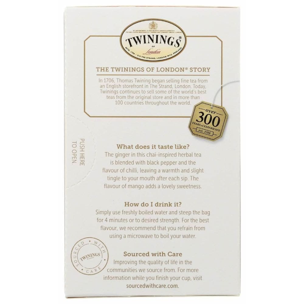 The ginger in this chai-inspired herbal tea is blended with black pepper and the flavour of chilli, leaving a warmth and slight tingle to your mouth after each sip. The flavour of mango adds a lovely sweetness.