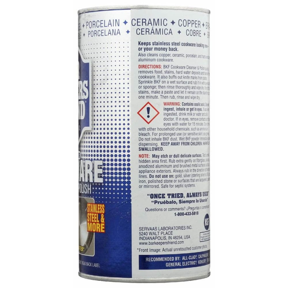 Made to power through baked-on food grime, Bar Keepers Friend Cookware Cleanser & Polish contains 50% more grease-cutting detergents than our other cleansers. Our Cookware Cleanser can remove stains from glass and ceramic casserole dishes, stainless steel utensils, enamel-coated cast iron, and other cookware.