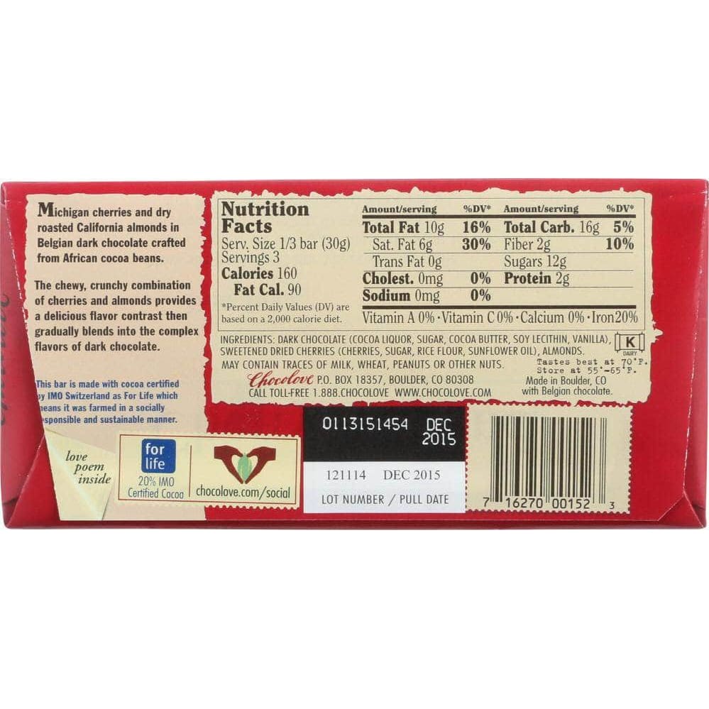 Chocolove Cheries & Almonds In Dark Chocolate Bar, 3.2 oz (Case of 4)