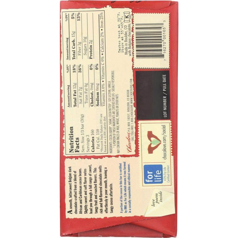 Chocolove Rich Dark Chocolate Bar, 3.2 oz (Case of 4)