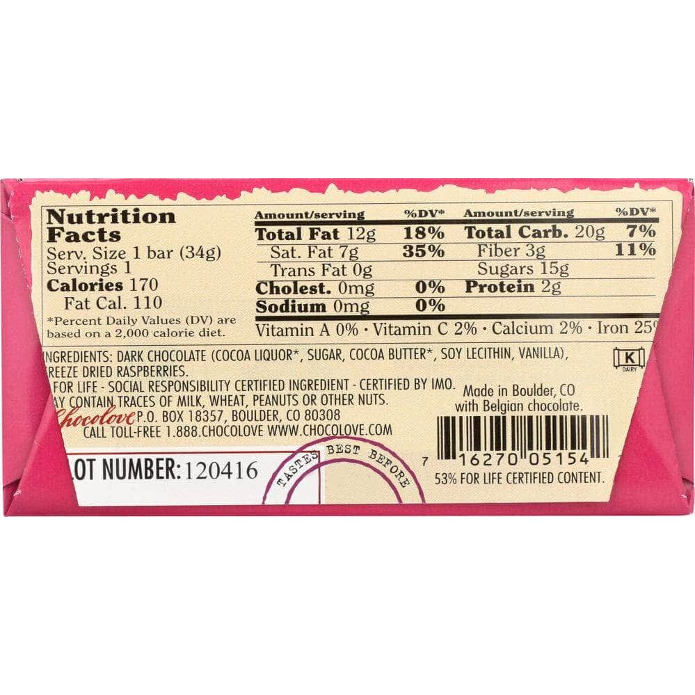Chocolove Mini Dark Chocolate Bar Raspberries, 1.2 oz (Case of 5)