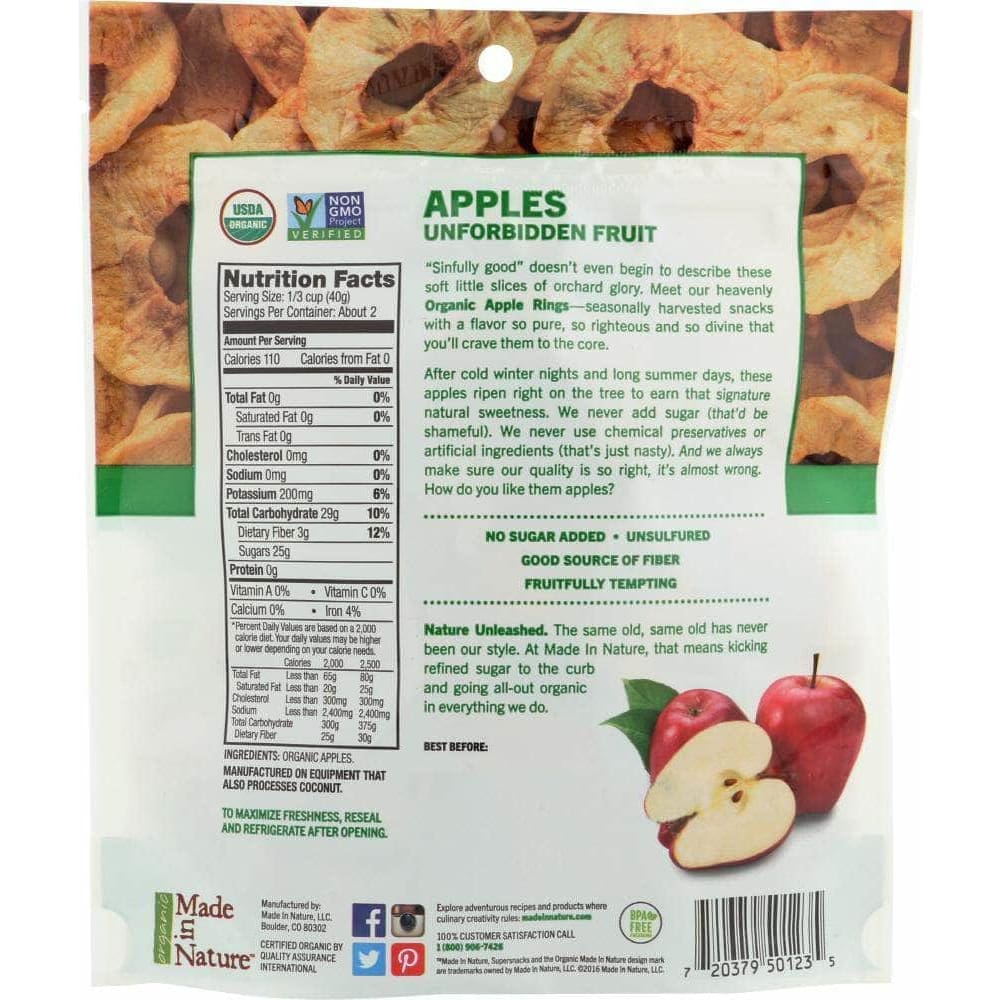 Made In Nature Organic Dried Apple Rings, 3 oz (Case of 3)