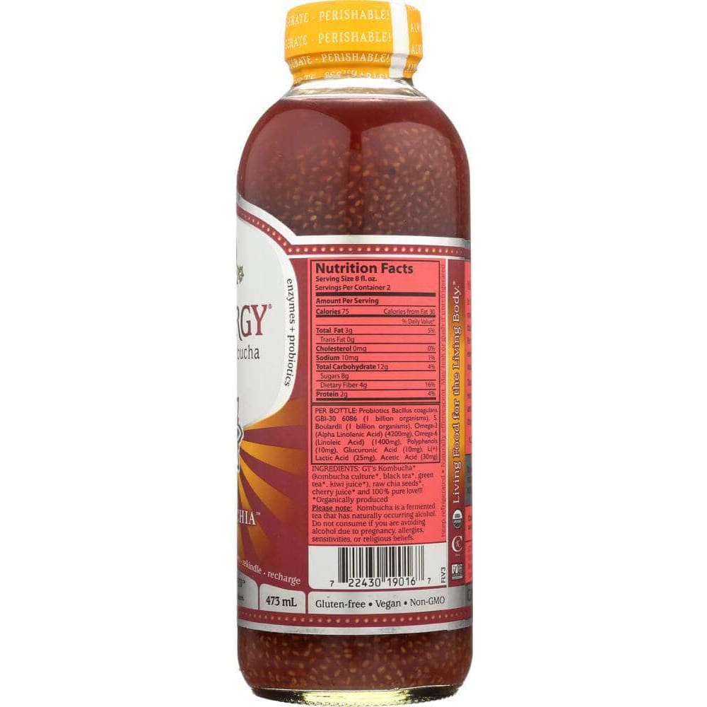 Gt's Enlightened Synergy Organic Kombucha Cherry Chia, 16 fl oz (Case of 4)