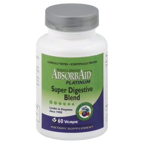 Nature's Sources AbsorbAid Platinum Super Digestive Blend breaks down all food groups. Nature's Sources AbsorbAid Platinum Super Digestive Blend maximizes nutrient absorption from consumed food. Nature's Sources AbsorbAid Platinum Super Digestive Blend also helps alleviate digestive disturbances such as gas, bloating, and acid indigestion.