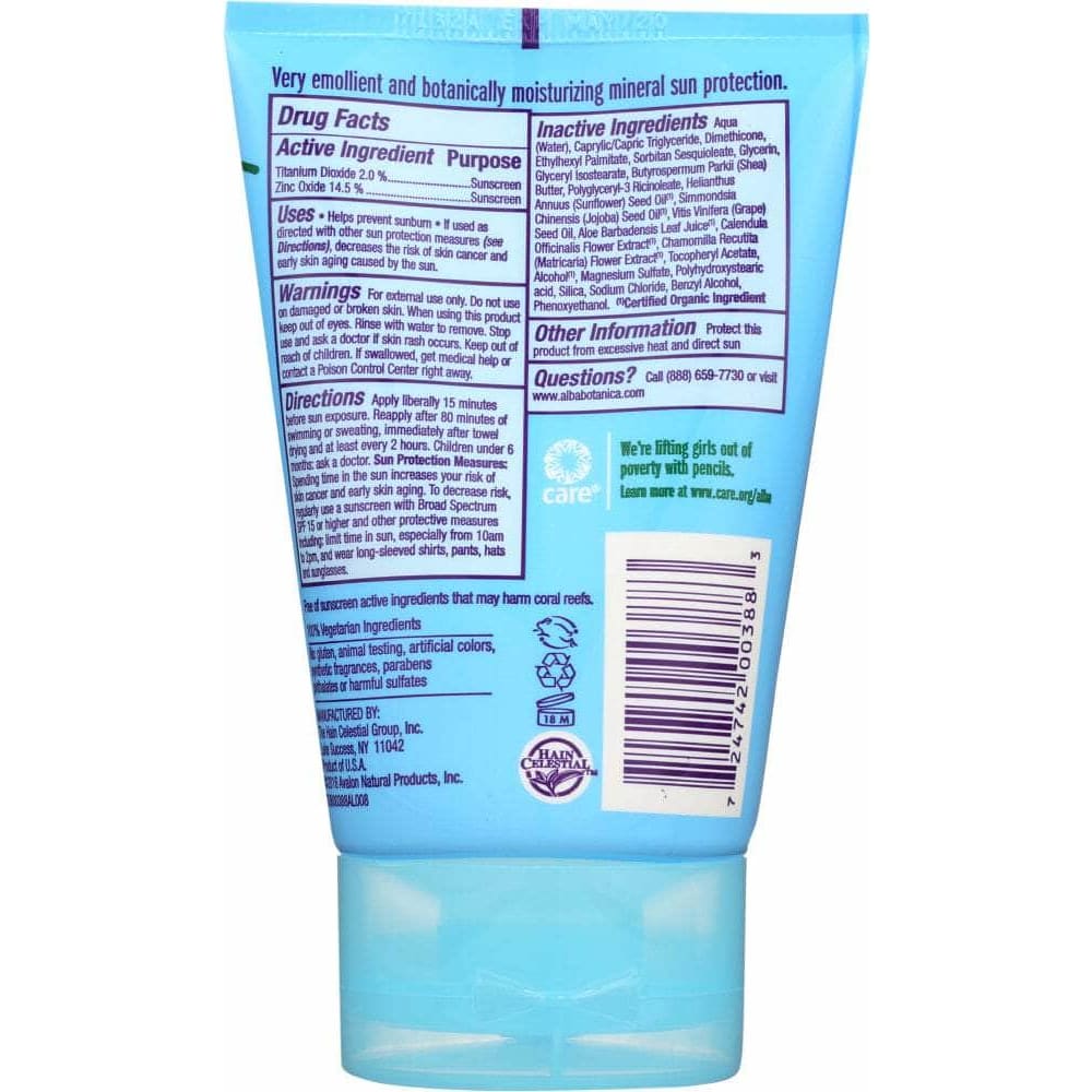 Alba Botanica Very Emollient Sunscreen Kids SPF 30, 4 Oz
