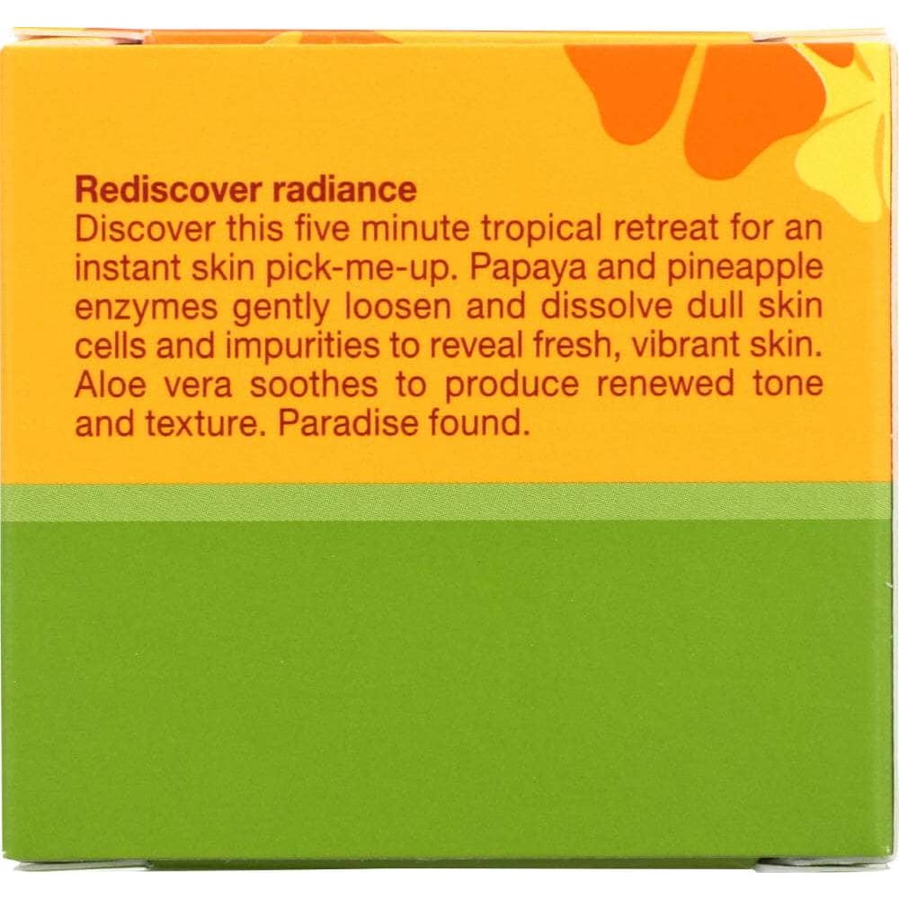 Discover this five minute tropical retreat for an instant skin pick-me-up. Papaya and pineapple enzymes gently loosen and dissolve dull skin cells and impurities to reveal fresh, vibrant skin. Aloe vera soothes to produce renewed tone and texture. Paradise found.