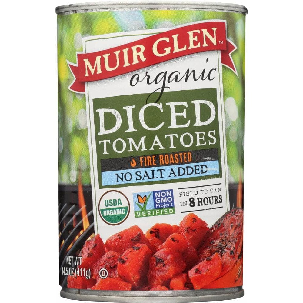 MUIR GLEN Fire Roasted Diced Tomatoes, No Salt Added, 14.5 oz (Case of 4)